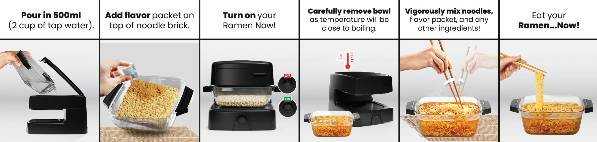 Introducing the Ramen Now!™ — the world’s first Keurig-style ramen machine that brings you hot, slurp-worthy noodles. No stove. No microwave. No mess.